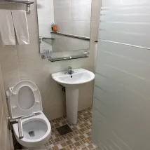 我可以在午夜後入住! 飯店本身感覺有點舊,但因為我只是來睡覺,所以沒關係。 淋浴和衛生間是分開的,但它們在同一個空間,所以可能會有點濺水。