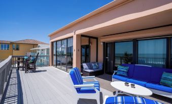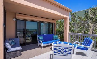 您可以通過客廳的滑動玻璃門以及主臥室的滑動玻璃門進入大陽台。白天,您可以在陽台上欣賞墨西哥灣的美景,並在絢麗的日落之後欣賞景觀照明照亮整個房屋。