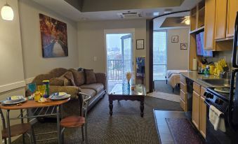 Great location for downtown entertainment! Quiet and pleasant stay. Bed was super hard not my favorite. Couch super squishy not my favorite.