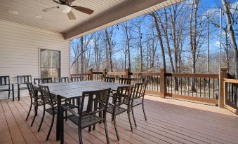 We had an excellent time hanging out before and after the wedding at your lovely property. We eat, did puzzles, went wine tasting, rode bikes on the Katy Trail, walked to the Innsbrook market and were surprised to find Starbucks. Also used some of the trails in the neighborhood. The wildlife was a joy to see. We did use the blower several times trying to clear the outdoor cushions of pollen. Perhaps covers would help that. But we had pretty much everything we needed for a long weekend together. We had 12 adults and 1 infant. Thanks for your help with our one added person. Had to add a last minute babysitter to take care of the infant while we were attending the wedding.