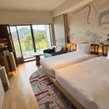 對犬山英迪格慕名已久,前兩年剛開業就被不少博主的探店圖文種草,酒店公區景觀既有日式庭園和枯山水的侘寂風,又充分融入中式園林設計的造景手法,隨便舉幾個例子:從酒店大堂巨大的落地窗看向對面山頭的犬山城——借景,酒店前台旁邊的圓形窗户宛如滿月——框景,客房裡竹編的軟隔影影綽綽——漏景,更不用説其他隨處可見的移步異景。雖然是現代建築,卻在空間設計、軟硬裝佈局、飾物擺件等融匯古今打造出獨具一格的東方美學場景。衹看酒店的宣傳照或者其他博主的圖片,都不及親自入住後細細品味。 本次入住是用6月份海豚大促的房券兑換,單晚730+,9月下旬的週六不需要額外補差價,同期IHG官方渠道不含早的乞丐房價格超過4.5萬日元摺合RMB大概2150元,捨不得多花5500日元買早餐,總有些許遺憾,下次再來一定要嚐嚐,不然周邊食肆着實寥寥無幾。 從名古屋中部機場出發,可以直接搭乘岐阜方向的名鐵電車直達犬山遊樂園站,出站後走西出口,沿着河邊的馬路往犬山城方向步行幾百米就能看到酒店招牌。酒店門口有一段長長的走廊,兩側是精緻的日式庭園和枯山水,巨大的黑色木製大門走近後會自動打開,躍入眼簾的就是大堂落地窗後面的一池秋水,抬頭看是屹立數百年不倒的犬山城。 下午3點剛好是許多客人辦理入住的時刻,工作人員手寫號牌,引導我和朋友到旁邊大堂先休息區等候,大約10分鐘輪到我們辦理入住,客房已經提前準備好,在3樓正對酒店入口走廊,視野開闊,景觀極佳。 客房的竹製軟裝和傢俱很像之前住過的成都園博園美憬閣瀑布酒店,客房估計有30多平方米,洗手間三分離,客房和陽台都擺放了沙發。來過幾次日本,除了東京、大阪、京都和名古屋市中心的商務酒店稍顯擁擠,其餘住過的酒店都挺寬敞的,不像國內許多遊客描述的那樣侷促緊湊。 酒店沒有泳池,但一樓有温泉(據説是引水自犬山本地有名的白帝温泉)。男女湯隔開,除了室內湯池,還有一個半户外的湯池(湯池在户外,頂部有遮蓋,四周有密閉性很好的竹製籬笆與外部道路隔開)。湯池整體規模與前段時間住過的福岡宗像美居相當,但户外湯池景觀稍遜,也沒有公共休息區,沒有茶水和冷飲。但是比純室內的京都威斯汀、奈良諾富特體驗更好。温泉營業時間7點-23點,趕早去人很少,但遲一點夜泡也別具風情。 健身房在温泉旁邊,落地窗正對隔壁的有樂苑(需單獨購票參觀),全套沃特羅倫的木製健身,不僅有常見的健身設備,還有划船機、帆船機、悠美板……與酒店整體風格很搭。 從一樓餐廳可以通往酒店背後的水池和草坪,也能步行前往犬山城(17:00關門,且關門後城下町的商鋪也基本打樣)。 如果不在酒店吃飯,就得去前一站的犬山站附近找飯館,便利店也在這邊。早上8點半退房後路過前一天來時走過的河邊小路,應該是有早市,可以吃早餐、買水果,但我們路過的時候已經在收攤了。 從中部機場到酒店直達電車大概1個半小時車程,在名古屋換乘的話還能快一點1小時10分鐘,從名古屋站出發的話大概35分鐘。下次如果市區的酒店太貴,不妨來犬山英迪格住一晚,當然,我已經計劃春夏秋冬都來打卡這座精緻迷人的英迪格酒店。