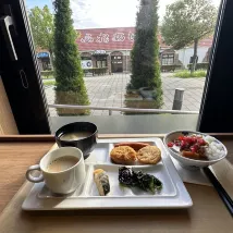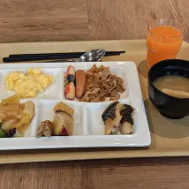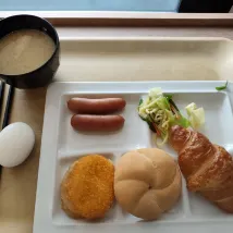 在車站附近,走過去很近。房間大小適中,有個小沙發和桌子,整理東西很方便。早餐挺簡單的,種類不多,早上墊墊肚子足夠了。