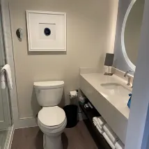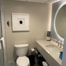 酒店的房間不是很大,服務很好,早餐兩個人50美金內可以點,住了三天,早餐很好吃,停車費每天42美金,去哪裡都還比較方便。沒有拖鞋和牙刷,吹風機比較老式。有免費的瓶裝水,不夠了可以要。房間沒拍照,早餐拍照了。