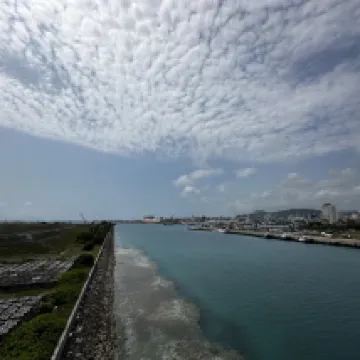民宿類型。我住的單人間,麻雀雖小五臟俱全,帶有常見家電,包括洗衣機、燃氣爐、微波爐、烤箱、電飯煲、熱水壺等,願意的話可以去附近的市場買材料自己開伙。 帶一個小陽台和晾衣設備,外面風景很好。那個大橋可以走上去,橋中心有塊小觀景區,可以看下港口全貌。 附近相對比較冷清,沒什麼商家,不過石垣本身就很小,走到以公設市場為核心的區域也就10分鐘,而且樓下3分鐘就是一個全家和一個免税店。到石垣港差不多也是步行10分鐘,從那裡可以坐船去其他離島。 樓下不遠處有個碼頭,晚上有人釣魚,還有個漁具店,有興趣的人可以試試。