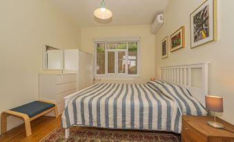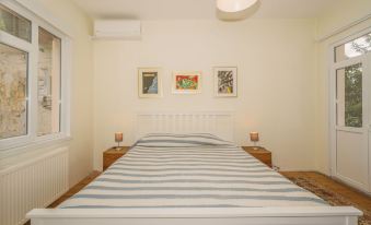 All three bedrooms are located towards the rear end of this hallway with one of them boasting a balcony overlooking the garden. One of the bedrooms has a king bed and the other two has double beds all with fresh linens, extra pillows and blankets for those guests that seek added comfort and warmth, as well as ample wardrobe space for heavy packers. All three rooms have brand new A/C units for those hot summer days.