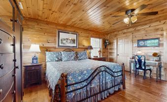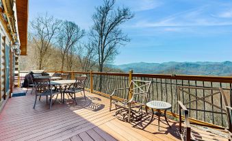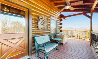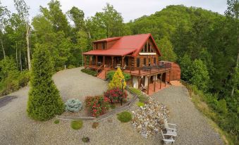 Secluded mountain view log cabin with WiFi, fireplace, & wrap-around porch