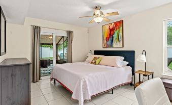 步入住宅,您會發現一樓設有寬敞的廚房、可容納6人的餐桌、開放式起居空間以及帶獨立衛浴和辦公區的特大床主臥。推拉玻璃門之外是一片戶外綠洲,設有帶座椅和丙烷火坑的大型露台、帶瀑布的波光粼粼的海水游泳池、木質火坑區以及帶圍欄的後院,非常適合探索!