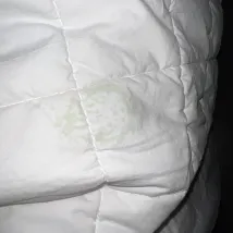Hair on bed, construction going on, smoke smell, brown stains on bed