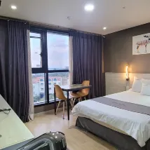 性價比超高。房間乾淨整潔,設施齊全,基本生活用品一應俱全。很多酒店通常不太美觀,但這家酒店卻一塵不染。雙人床上的小床墊有點硬,睡起來不舒服,但房間乾淨安靜,這點很不錯。地理位置便利,位於韓潭海岸步道和挾才海水浴場之間,是探索這些地區的理想基地。