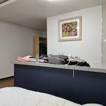 位置相當方便,適合遊覽濟州島北部的任何景點——我們是開車來的,因此出行沒有太大問題;但對於搭乘大眾運輸的人來說就不太確定了(自己做研究吧!) 入住和退房非常方便(我們只需要出示預訂 ID 並交出房卡即可退房)。這裡有一個無人食品儲藏室,裡面有各種拉麵、飲料,甚至還有漢拿峰帽子之類的配件!哈哈,所以吃晚餐真的很方便,不用特地跑去便利商店。 房間稍微小了一點,但是對於我們兩個人和兩個大行李來說足夠了,而且地板暖氣很好,可以舒服地休息:)推薦!