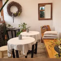 雖然它位於全州韓屋村中心稍偏外的地方,但步行即可到達所有地方,距離開往全州站的公車站也只有一分鐘的路程。 這是一間傳統的韓屋房間,配有地板暖氣。房間內設有獨立淋浴間和衛生間,保持乾淨整潔。 床鋪在地板上,不習慣的人可能會覺得床墊很薄。 房間面向庭院,我們坐在陽台上享用了免費的水果。這裡還有早餐和飲料角。 老闆非常熱情,給我們介紹了餐廳,並向我們介紹了韓屋村。 這對我們來說是一次很棒的體驗。 非常感謝。