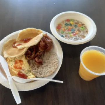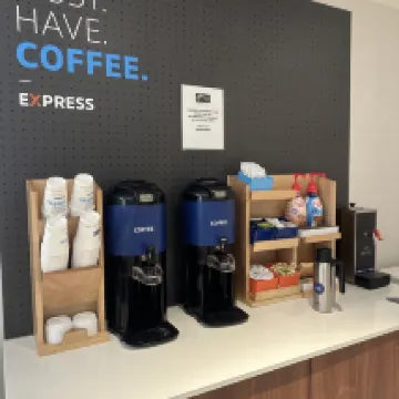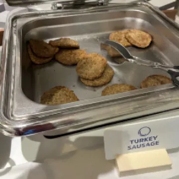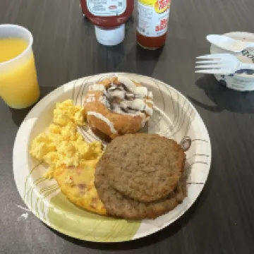 我們很喜歡這家飯店,所以住了兩次。早餐很棒,咖啡和茶無限量供應。還有機器現做的新鮮煎餅、水果和優格、香腸和雞蛋、麵包和鬆餅。如果您時間緊迫,還可以打包帶走。員工熱情友善,樂於助人。飯店位置優越,可欣賞紐約市天際線和日出的美景。步行即可到達附近的購物中心和火車站。