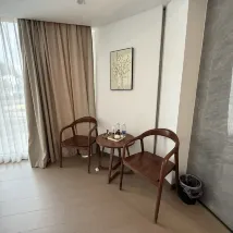 The receptionist smokes at the front desk which is not desirable. The room is nice and comfortable. However, we didnt get the mountain view room though it was mentioned in the booking.