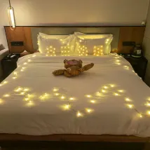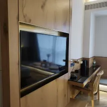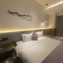 這次來江門,這家酒店真的給了我大大的驚喜! 一進房間就被驚艷到了,整體是清爽的原木風設計,配上雨洗般的乾淨質感,每一個角落都透着整潔,讓人瞬間卸下旅途的疲憊。最讓我喜歡的是那個小飄窗,午後陽光灑進來的時候,喝杯茶發會兒呆,簡直是幸福感滿分。 服務更是沒得挑,管家特別貼心,不管問什麼問題都能及時迴應,細節處的關照讓人覺得特別温暖。另外必須誇誇12樓的露台,視野開闊又舒服,吹着風看看風景,一天的勞累都煙消雲散了。還有小機器人可以送餐,非常方便。 如果再來江門,一定會再選這裏,強烈推薦給大家!