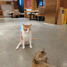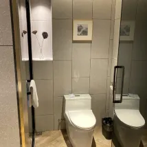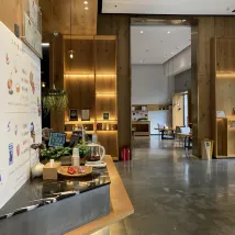 大堂有小貓咪挺親人的,智能機器人送餐方便,工作人員態度挺好的,空調也挺好的。12層空中花園有電影可看。住房體驗很好哦,還有洗衣房設施那些。