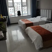老闆凌晨接機,送機準時,家庭出遊安排的大房間,三張床,有機會去的話再來。新小區環境還好,早上起來吃個早飯轉轉,小區內綠化好。