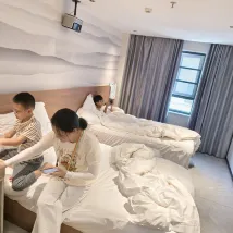 收到您的反饋既開心又愧疚!開心的是 2 米 4 的大床能滿足一家三口需求,位置、免費停車、周邊小吃集市、各類便民設施(機器人、洗衣機、健身房)和一次性馬桶墊能讓您覺得貼心;愧疚的是隔音問題和清晨的噪音打亂了您的休息,還讓您產生了不安感,這完全是我們需要改進的地方。我們會馬上安排專人排查客房隔音情況,同時加強對公共區域(尤其是電梯口)的管理,規範工作人員行為、控制環境噪音。如果您後續還有入住計劃,隨時和我們説,我們會優先為您安排遠離電梯、相對安靜的房型,儘量減少干擾。再次感謝您的真實反饋,它對我們太重要了,祝您和家人接下來一切順利!