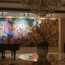 【將畫展搬進酒店】【人文府第 學者之家】酒店大堂最顯眼的地方擺放着一張木桌,擺滿了書籍畫冊,從山東大學徐超教授的書法作品到王克舉教授的《黃河》主題長卷油畫,從百年歷史中走來的山東大學《辦學章程》到今天的《山大日記》,有文化的傳承也有百花齊放的精彩。在大堂,牆上掛的,桌上擺的,所見之處均是書畫文藝作品,一路走來,似酒店更似藝術長廊。我們不止是一座酒店,更願成為美好生活方式的引領者。願學府大酒店能夠成為您在這座美麗城市駐足的温暖之家,祝您一切順遂。
