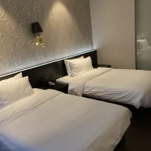 一家三口來要臨近房間,告知相鄰房間房型不一樣,最後看並無不同,明明定的帶早餐的被告知沒有,服務人員差。關於房間,我不太明白怎麼做到評分4.8以上的,走廊地毯臟的足夠可以,屋內設施陳舊,衞生差,馬桶臟,門是不好開關的,淋浴用用水沒了,空調太糟心,不開太熱,開了最小風量還跟抽油煙機一樣嗷響,沒法睡覺,奇葩的下水道,一直嘩嘩流水聲,隔音太差了,大小酒店住了這麼多,這個真是忍不住,太差了,網上圖片與實物與價格均差十萬八千里。大家謹慎預訂,謹慎,謹慎