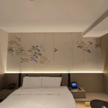 昨晚入住酒店,留下了非常好的印象。從窗外俯看經十路,燈火璀璨,環境十分愜意。 客房內部設計很用心,牆上的壁畫温馨又有格調,床頭燈光柔和,很放鬆。床頭還配備了無線充電,非常方便,省去了找充電器的麻煩。 酒店的服務也很貼心,大堂機器人能把外賣送到房間,感覺科技感滿滿,小孩研究了半天。整體體驗舒適又便捷,值得推薦。