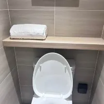 毛巾上有根捲曲的毛髮,真服了!而且浴巾都放洗手間馬桶上面隔板上,這樣也不是很衞生,馬桶每一次沖水的時候帶動的氣流會讓細菌和灰塵都吸附在浴巾上,洗護用品很差勁,洗髮水和護髮素都用上,洗完頭髮掉了好多,手感澀澀的,用完頭皮癢,有頭皮屑,真的感覺很差,酒店價格也不算便宜,東西太次了