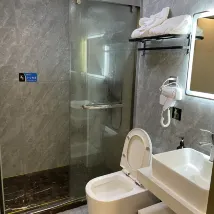 酒店離車站有點距離,拖着行李箱要走個15分鐘。衞生還行,但是衞生間沒有門,淋浴間也是透明的,跟朋友出去玩很尷尬。 房間給我安排在七樓,一共就兩個房間,還有一個會議室,且電梯一打開整個七樓都是黑的(後來到前台叫她打開燈了),房間裏還有個麻將桌,總之有點嚇人