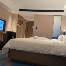 酒店很好找,在一個商場旁邊。提前加了微信發了位置。第一次過來,他家大堂在六樓,但有保安引領很貼心。 服務還是不錯的,感覺遇到的每一位工作人員都會主動點頭問好,很有禮貌。房間升了房,面積很大有設計感。衞生很乾凈,邊邊角角還放了硅膠防撞角。隔音效果也很好,晚上睡得特別安穩。健身房器材很全,像瑜伽啞鈴啥的都可以。設備什麼牌子忘了。還有洗衣房洗洗衣服很便利。樓下有商場超市,購物也很便利。