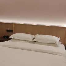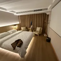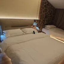 酒店處於天堂口附近,去月亮灣停車場較近,整體也算方便,樓下隔壁就是如意林卡,位置還是不錯; 酒店設施簡言之就是麻雀雖小,五臟俱全,房間還是挺舒服的,也有天貓精靈這些“智能設備”,唯一缺點就是冷氣不太給力,開了一晚房間還是比較悶,廁所排氣扇來着房間空氣也感覺不太舒服;負一別有大世界,能洗衣服和泡“温泉熱水”,還有汗蒸房和腳按摩,不過後麪幾個是付費項目,有想法的可以去體驗下; 整體評價還是能給五星,前台服務很好,房間清潔乾淨,推薦👍
