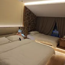 我們定的是一個套房,圖片詳情上可能還沒有那麼清楚,打開房間之後發現是兩個獨立的房間,沒想到這個價格能訂到空間這麼大的套房。因為是新開的酒店,所以很乾凈,床品也很乾凈。前台的小哥哥小姐姐非常的熱心,給我們推薦的附近的美食也很合我們的胃口。九寨溝太美啦!下次來還打算繼續住,這裏離溝口也很近!