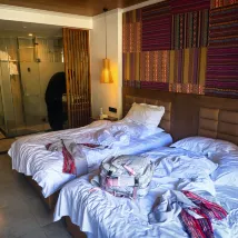 你好小羅,首先非常感謝你們在眾多酒店中選擇入住小舍,也感謝你們對酒店地理位置及性價比匹配的認可,同時也對此次入住體檢不佳深表歉意!酒店於2025上半年重新裝修,木質藏元素系可能是你們不喜歡的類型,非常抱歉!18號你們入住當天房間分配在1樓,進房間確發現小蚊蟲,經溝通帶你看其他房型滿意後換房至411。山區酒店被大山自然環抱,樹木必然很多,房間在打掃中要開窗通風,小蚊蟲難免飛進房間。考慮到此問題酒店每月進行2次大型消殺確保衞生,另外每個房間還配有滅蚊片。酒店布草是正規洗滌公司在清洗,房間衞生必須每日徹底打掃,床品必須一客一換。至於你倆身體出疹子,有各種因素不可排除,比如吃的喝的用的還有高原氣候等等(當晚你們也有點3個外賣),還有就是晚上你們沒休息好第二天1早送你們去景區你們對工作人員是衹字未提且以差評方式來反饋,我們的服務從登記到進房間到帶你看房到換房再到給你們幫拿外賣是一直在熱情跟進,我們也非常的遺憾!總之謝謝小羅所謂的無功無過,我們做的不足之處定會引起重視,認真對待並提升。最後送上最真誠的祝福,祝你們身體健康,萬事順意,扎西德勒!