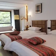 剛到九寨溝就被這家酒店的交通戳中!出高鐵站直通車站走 100 米就到,拖着大行李箱不用多走一步,太省心了。2025 年新裝修的房間超有藝術感,木質元素搭配九寨溝風光壁畫,清新又高級。智能設備也很貼心,去景區還能在酒店門口的月亮灣上下車點等車,不用繞路。住了三天,每天出門、返程都超順暢,新裝修的房間又乾淨又舒服,下次來九寨溝還選這!