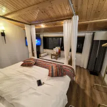 這此到九寨溝的旅行,總的來説非常的不錯,尤其是選擇了這家酒店(半山月舍酒店) 1.酒店房間的藏式裝修風格是我喜歡的,房間還配備了智能助手,設施很新,關鍵是房間是有地暖的,整個房間都暖暖的,空調完全用不上,九寨溝遊玩一天回到酒店休息,特別的舒適 2.外面環境很美,抬眼望去就是一片彩林。躺着床上享受陽光的同時看到窗外的美景,心情也特別的放鬆,晚上睡覺也是很安靜,一覺睡到了天亮 3.尤其是前台的服務很熱情,問什麼問題都是很耐心的答覆我們,早上很人性化的接送服務,來九寨溝的朋友們,非常值得推薦的酒店,一次讓人流連忘返的旅途