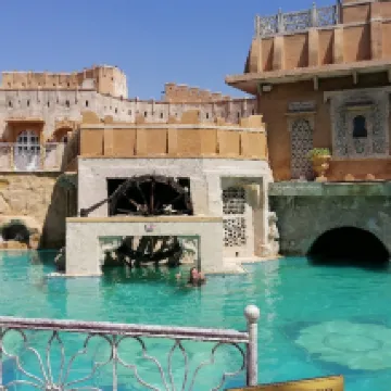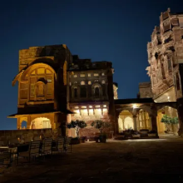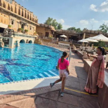 Storico palazzo dei maharaja sapientemente ristrutturato, l’Ajit Bhawan accoglie con uno splendido ingresso decorato, che conserva tutto il fascino regale dell’epoca. L’hotel si sviluppa in un ampio giardino dove sono disseminate diverse tipologie di camere: alcune tendate, altre di dimensioni standard e altre ancora molto spaziose, come la bella sistemazione che ci è stata assegnata, caratterizzata da un certo gusto evocativo di un villaggio nel deserto. Nel cuore della proprietà si trova una piacevole piscina incastonata tra i giardini, mentre non mancano amenità come spa e palestra, entrambe ben integrate nel contesto. Il ristorante è particolarmente suggestivo alla sera, con tavoli all’aperto tra le luci del giardino e un’atmosfera molto piacevole; la sala interna, invece, risulta piuttosto anonima. La qualità della cucina è buona, anche se la colazione appare meno convincente, con varietà e qualità piuttosto modeste rispetto alle aspettative. Nel complesso, una bella soluzione dal fascino autentico, con un buon rapporto qualità-prezzo, ma che non raggiunge i livelli di servizio e di cura dei dettagli delle strutture di lusso più raffinate del Rajasthan.
