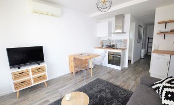 Appartement assez fonctionnel mais avec peu de rangements. Chambre isolée du reste du studio via un rideau, et salle d’eau via une porte coulissante. Environnement pratique mais assez bruillant, pas de double vitrage ni volets à la baie vitrée. Super accueil et propriétaire disponible et arrangeant !