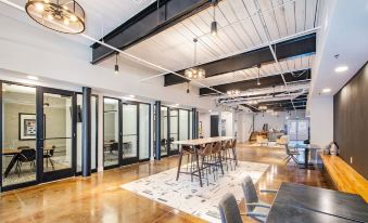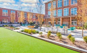 The common spaces in the building are available for guests to use, including a fitness center, outdoor pool, game room, and small offices for remote work. Steps away on the campus are other businesses to enjoy;