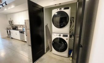 The apartment includes a fully stocked kitchen, living room, dining area, bedroom, and bathroom. Everything is fresh and new! We have strong wi-fi and a Roku TV preloaded with all the streaming apps (just bring your log-ins).