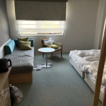 一進房間就有一股霉味,感覺悶了一段時間,結果一進浴室就看到有小蟲在浴室飛,陽台旁也有死掉的小蟲沒清。 我是住北館五樓,出電梯以後就是超級悶,整個走廊沒冷氣的感覺,加上是地毯的關係,整個就是超級怪的味道。 地點是很好,而且二樓入口一進來有很多置物區可以自助使用,櫃台前也有入浴鹽可以自己裝回房間。 但 七樓洗衣機真的很誇張,居然是跟東橫一樣….而且洗衣服價錢還比較貴,個人覺得蠻失望的。