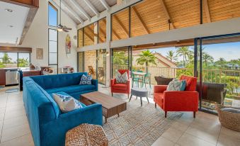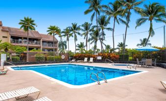 This dreamy island condo is waiting to welcome you to a true slice of paradise. Wake each morning to the sounds of tropical birds and sip coffee while gazing out across the lush gardens that decorate the property. Floor-to-ceiling windows allow strong natural lighting and work in tandem with the lofty ceiling fans to circulate cooling cross-breezes. A zen-like loft space comes furnished for multi-function purposes, with thoughtful additions including a dedicated desk for remote working, yoga equipment, and a swinging chair that makes a cozy reading nook. From the condo, you can walk to Keahou Bay to spend the day snorkeling, swimming, and beach-going, or charter a boat tour. Keahou Shopping Center is also within walking distance, along with the Outrigger Kona Resort where you can grab a sunset cocktail. An on-site pool and spa area add even more options for sun-soaked leisure. Close nearby there is pickleball and tennis courts for you to enjoy during your stay.