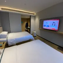訂了4間雙床房分另在4、5、6樓,是一次非常滿意的入住體驗,地點方便對面馬路是東滙城,房間光猛設計貼心小桌和椅子方便在房間品嚐美食,USB叉電非常方便,冷氣非常好,智能助手“小度”很聰明~唯一小缺點就是6樓隔壁房間比較嘈,深夜聲浪更大,整體不錯退房時還了解了V l P會員的資訊,下次來還會選擇入住👍🏻