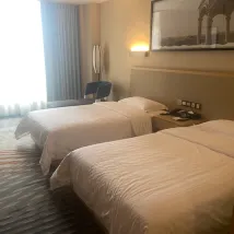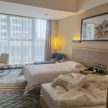 房間很乾凈整潔,床也挺舒服的,服務員很熱情,幫忙拉行李帶上來,旁邊有一個大型商場,逛街吃飯很方便的。