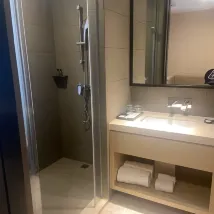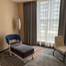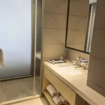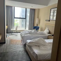 酒店應該比較新,環境還可以,但是房間內的燈光挺暗的,燈光對長者家不夠友好。五一期間房價不便宜,性比價有點不夠,而且入住還需要給按金,雖然退房後是秒退,但是感覺還是不夠方便。