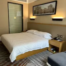 性價比很高的一家酒店,酒店設計很用心,很多當地特色的擺件,房裡裏面彩光很好,一眼就看到外面的風景,地面地下都有停車場,服務態度很好