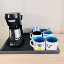 靠近公路,不過夜間不吵。停車在自己門前方便。前台自助咖啡機,味道不錯。