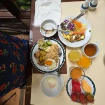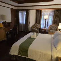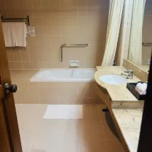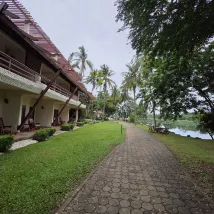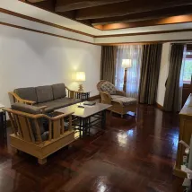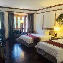 The customer service at this hotel is excellent. The swimming pools are excellent. The food is very delicious but the prices are a bit higher than at restaurants outside the hotel. The rooms are good but they are becoming dated. The rooms' style is classic, which makes them somewhat dark with orange-tinted classic lighting. The staff will respond very quickly when you face problems such as issues with the cable TV. The buildings are surrounded by plants, trees, and small water features flowing around each building, so some insects, mosquitoes, and small animals can be found in your room. This hotel might not be suitable for elderly guests. There are multiple buildings that can make it confusing for seniors to find their way to the lobby. In addition, if seniors stay on the second floor, it may be difficult for them to walk up and down. If you and your group cannot get rooms close together—for example, if you are staying in three different buildings—it can be difficult to walk to your group members' rooms.