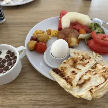 Завтраки многообразные. Все так по домашнему) много фруктов, любое пожелание исполняют. Выпечка вкусная.