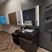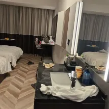 前台小姐姐説未聽説過攜程鑽石卡有升級申請權益,不好溝通。房間窗户位置較高要抬頭仰望,加濕器不知道是裝水太滿還是漏水,底部滲水漫出桌面外溢,為避免弄濕牆紙和滴到地下,用紙巾圍欄和垃圾桶接水。另一間房臨近外街隔音不好早上噪音大。