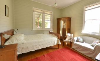 Perfectly suited to families and large groups, this spacious, well designed home offers comfortable accommodation for 10-12 people. Cool in summer and warm (centrally heated) in winter, this is a house for all seasons. You will be delighted with the large bedrooms, high ceilings, period details and polished kauri timber floors. Take full advantage of the well equipped kitchen and enjoy dinner on the grand dining table. Relax in the open planned living area or enjoy the outdoors on either the sheltered front veranda or the rear sunny deck, overlooking the garden with its abundant birdlife. You will love Grevillea.