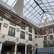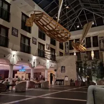 A beautiful hotel: a nice lounge area with high ceilings, a warm swimming pool with sauna, a cool indoor playground for kids, tasty food. It was raining outside but we had a lot of fun inside! Very happy being there with my family! 😃