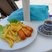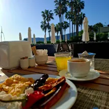 Понравился отель и сервис. Всегда чисто, уборка каждый день. Пляж 2 мин. Есть закуски до и после обеда. В номере есть тапочки и чайник.