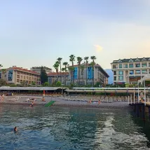 Очень неприятные ощущения от отеля. В нем нет никакой развлекательной программы, даже простой музыки по вечерам. Делать нечего, только искать, чем заняться за его приделами. При этом, под спокойный отдых отель тоже не подходит, так как расположен на шумной центральной улице. Имеет форму колодца и очень плохую шумку. В середине колодца расположен бар, от которого шум распространяется по всему колодцу. Живя на 4ом этаже, происходящее в баре было слышно как в соседней комнате. Пирс платный, бар на пляже платный (из бесплатного бара на пляж конечно же ничего приносить нельзя). Количество отельных лежаков у бассейна и на пляже совершенно не рассчитано под количество гостей, уже с 8-ми утра все занято. Интернет с трудом загружает даже простые мессенджеры. Интернет получше конечно же платный. Но на все это мы были готовы закрыть глаза и не фокусироваться на плохом. Все же приехали отдыхать, и все что не касалось отеля (прозрачное море, виды гор, хорошая солнечная погода, хорошая компания) заставляло забыть об отельных недоразумениях и не обращать на них внимание. Пока в соседнем номере не поселили шумную компанию мужчин. Одну ночь мы пережили, одна компания уехала, на ее смену заселилась другая еще больше в два соседних номера. Из-за шума, который создавали эти люди было невозможно спать. Отель все жалобы проигнорировал, другой номер дать отказались (хотя сами сказали что свободные номера есть). Когда мы объясняли ситуацию отдельному гиду, девушка на ресепшене ухмылялась и хихикала, повторяя что они ничего делать не будут. Отельный гид также сказал, что ничем нам помочь не может. Итого 3 бессонных ночи из и так не длинного отпуска. Также хочется обратить внимание, что стандартным номером тут считается как номер с балкончиком, так и номер с 1 окном выходящим в общий коридор, которое всегда будет закрыто, чтобы люди не заглядывали. Поэтому будьте готовы жить без окон или биться с персоналом за другой номер, в чем они всеми силами будут стараться вам отказать.